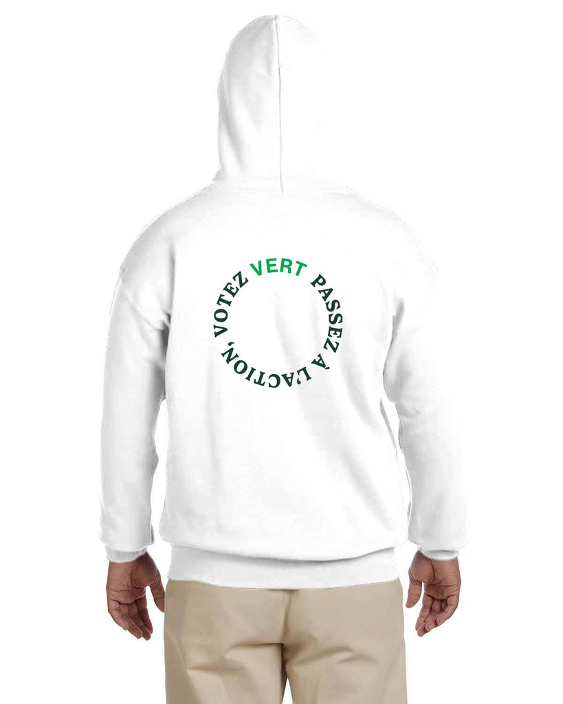 PV Adult Hoody White - PV logo on front and Votez Vert, Passez A' L'Action on back