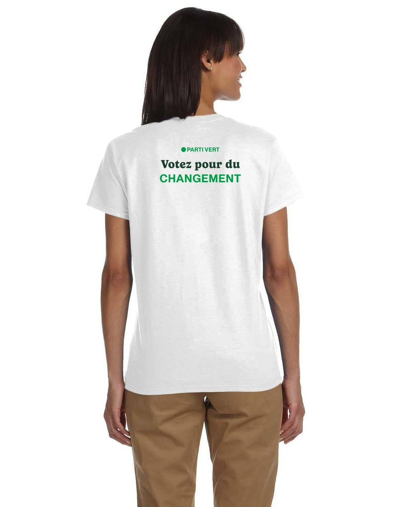 Women's Parti Vert T White - Icon on front & Votez Pour du Changement on back